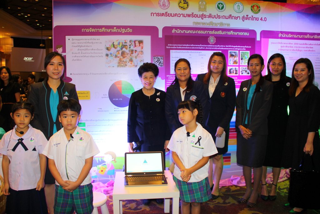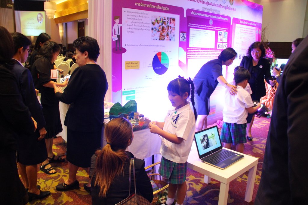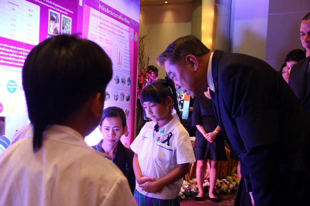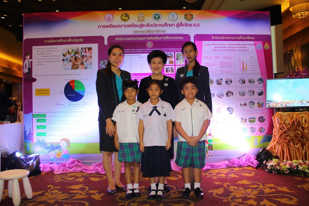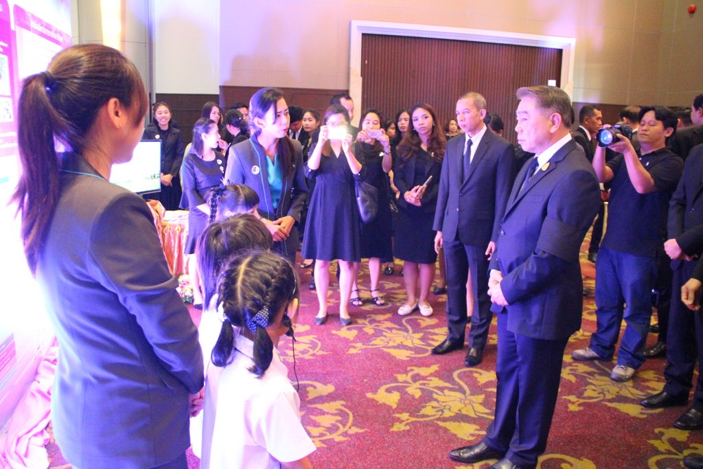 โดยมี ครูนิรันรัตน์ พันธ์ประสิทธิ์ ครูยุภาภรณ์ ลาวเกษม พร้อมด้วย ด.ญ.ภัณทิลา โสตถิวันวงศ์ ชั้น อ.3/5 ด.ช.ณัชร จอมบดินทร์ ชั้น อ.3/3 และ ด.ญ.พิรุฬห์ลักษณ์ อาทรชัยกุล ชั้นป.1/2 เป็นผู้แนะนำกิจกรรรมการเรียนการสอนให้แก่ พลเรือเอก ณรงค์ พิพัฒนาศัย รองนายกรัฐมนตรี ประธานในพิธี ที่โรงแรมรามาการ์เดนส์
