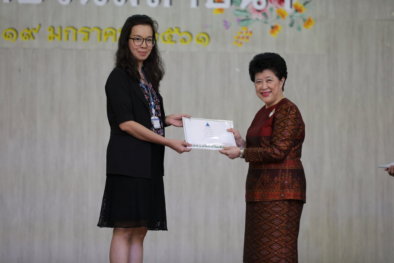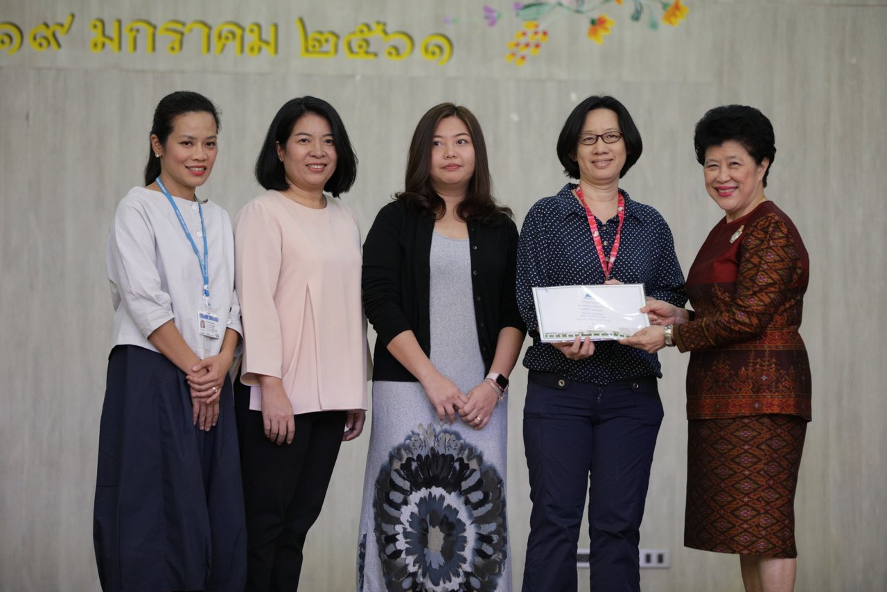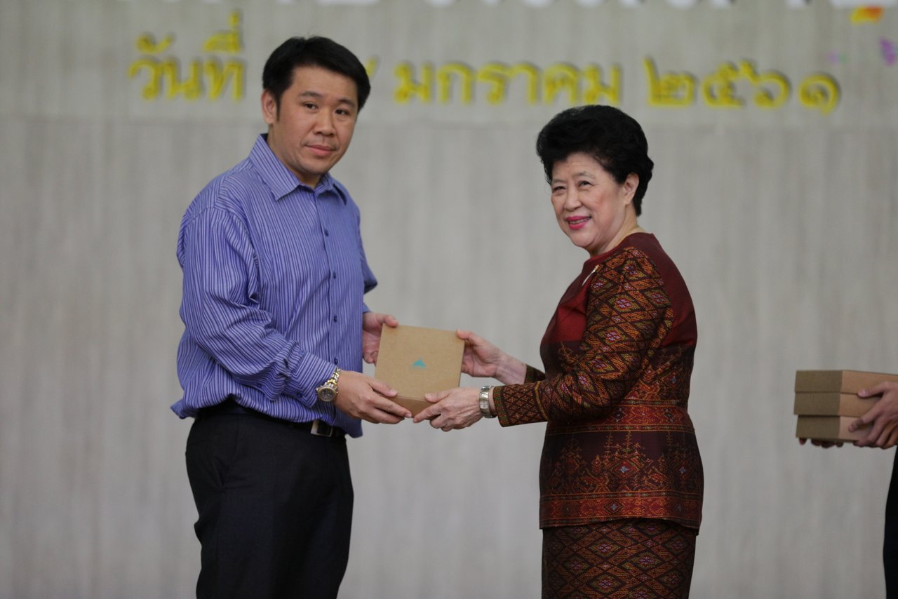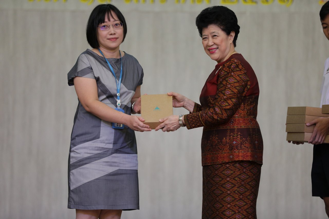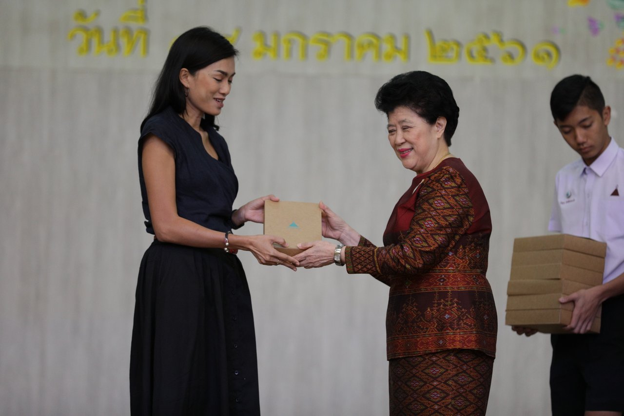 จากนั้น รศ.สมศรี รองผู้อำนวยการได้มอบเงินบริจาคให้กับตัวแทนจากมูลนิธิสายธารแห่งความหวัง และมูลนิธิธรรมิกชนเพื่อคนตาบอดในประเทศไทย ในพระบรมราชูปถัมภ์ ซึ่งน้องๆ ผู้พิการทางสายตา เล่นดนตรีและร้องเพลงให้ทุกคนฟังเพื่อแสดงความขอบคุณในการช่วยสนับสนุนทุนทรัพย์ ต่อด้วยกิจกรรมเซอร์ไพรส์จากสภานักเรียน มอบเค้กวันเกิดเพื่อร่วมยินดีกับการเจริญเติบโตก้าวหน้าของโรงเรียน โดยนักเรียนได้มอบเค้กต่อให้กับน้องๆ ผู้พิการทางสายตาเพื่อส่งต่อความสุขไปให้ผู้อื่นได้ไม่รู้จบเสร็จพิธีด้วยความเป็นสิริมงคลและความภาคภูมิใจของทุกคน ที่พร้อมมุ่งมั่นทำหน้าที่ของตนเองให้ดีที่สุดในการก้าวสู่ปีที่ 12 อย่างมั่นคงและเจริญงอกงาม